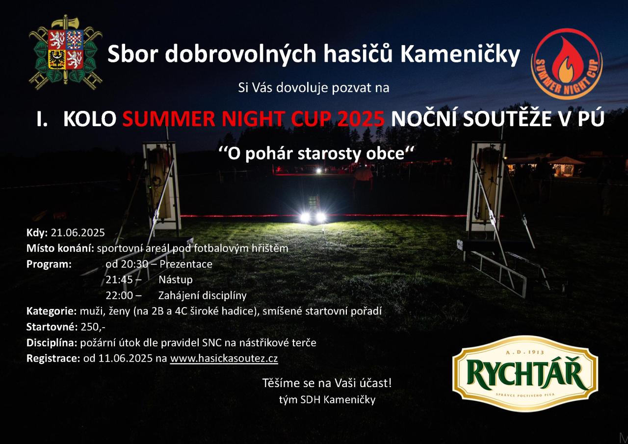 Noční soutěž v požárním útoku v rámci prvního kola Summer Night Cup 2025.